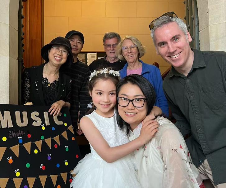 每一场温馨可爱的音乐会背后,离不开每一位参与 者的共同努力。除了舞台上闪耀的孩子们,还有一 群默默付出的“守护者”。Cinzia 老师和 Xiya 老师 在音乐厅门口,耐心地协助每一个家庭完成签到, 她们的微笑与鼓励,是孩子们登台前最好的定心 丸。她们还用相机记录下孩子们在音乐会蜕变之前 的笑脸,这些不经意的抓拍,成为了最动人的成长 见证。Roy老师与Andrew老师配合场地Tim老师, 准备舞台上下的装饰以及各类细节,还有背景音乐 的选取播放。Mina老师负责全场的沟通与主持,