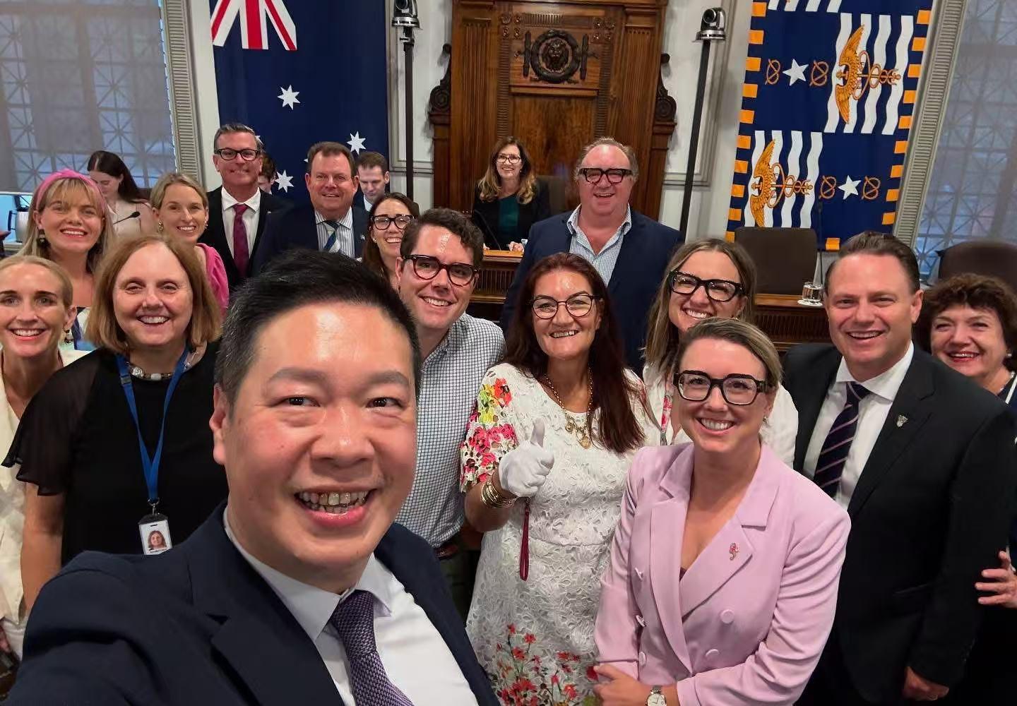 无论是走入政坛、融入城市,还是表达自我,他始 终强调那一步的勇气——先站出来。作为在澳洲政 坛耕耘多年的华人代表,他深知参政的不易,也明 白这份坚持的意义。