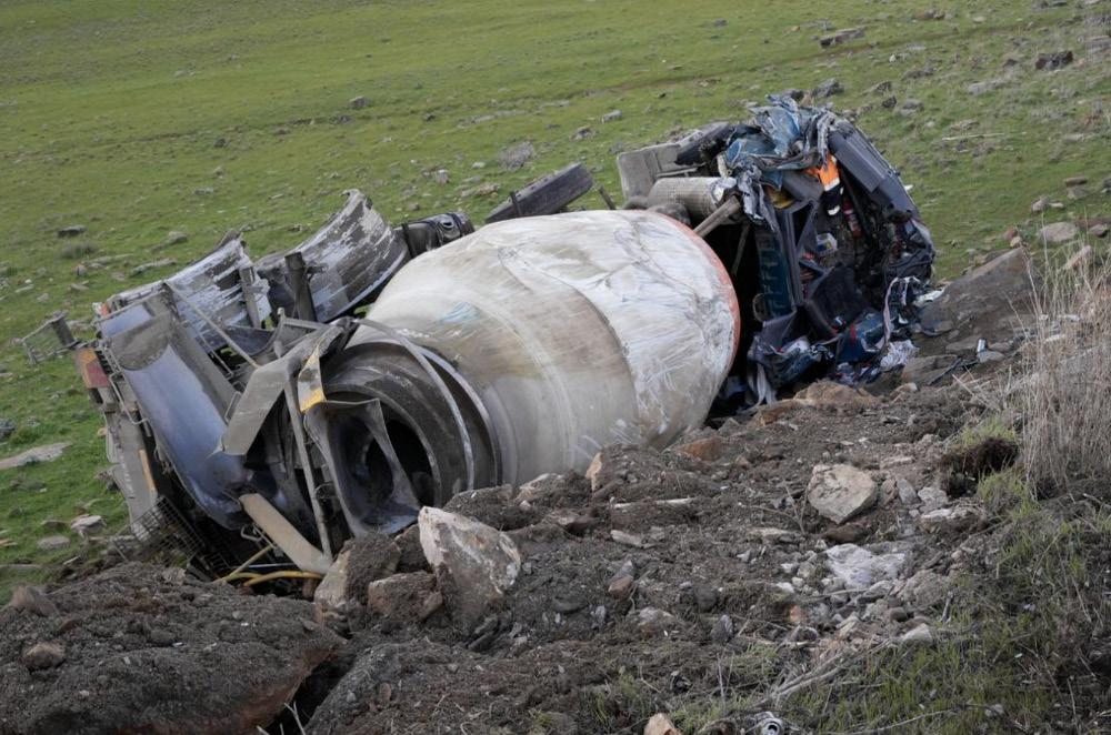 Stott 公路水泥搅拌车翻覆,司机重伤被空中救援