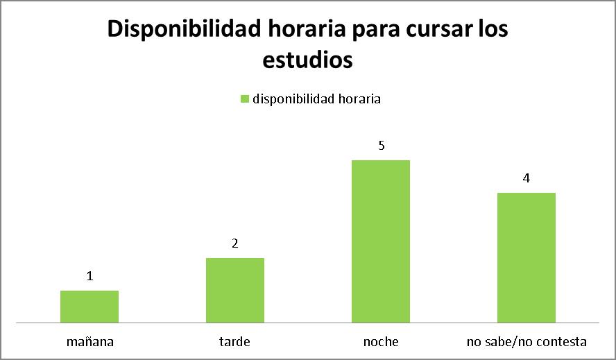 En el presente apartado presentaremos una serie de gráficos, en los que hemos plasmado la modalidad que prefieren las/los encuestados/as para terminar sus estudios, disponibilidad horaria para cursar, grado de interés en terminar el secundario
