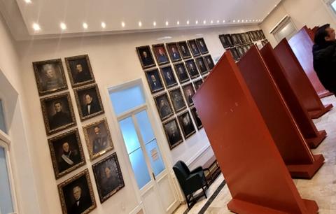 En la antesala encontramos los retratos de los gobernadores de Mendoza y de los periodistas más destacados, como una forma de reconocimiento a la tarea de difusión que realizan con el público