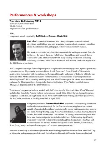 Performances & workshops Thursday 26 February 2015 Milton Court Concert Hall 17:00-18:30 Keynote session performance