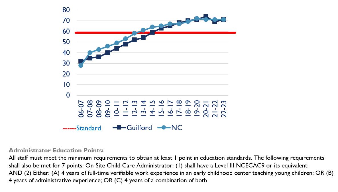 27 NC Partnership for Children. (2023 and previous years). Data set of EDU10 and EDU20 for LPC (DCDEE enrollment in facilities with at least 7 teacher and administrator education points). Available at (access required):