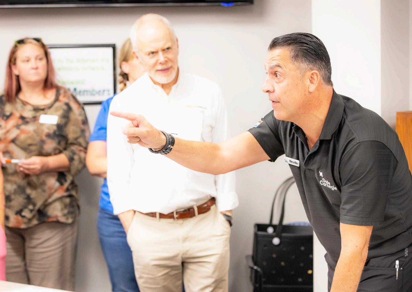 At right, Neville De Lucia, president and CEO of Dale Carnegie Training Central & Eastern North Carolina, shares tips with GMA members on how to be a better negotiator.