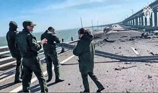 Estados Unidos disfruta viendo la escalada de la guerra. 1. El conflicto en sí parece haber pasado de ser un polvorín a convertirse en un reactor nuclear, debido a ciertas fuerzas que han estado avivando las llamas de la guerra. Entre ellos estaba la retórica radical del presidente estadounidense Joe Biden sobre la llamada amenaza de Armagedón. Por tiempos globales. Esta captura de video tomada y publicada el 8 de octubre de 2022 muestra un espeso humo negro saliendo de un incendio en el puente de Crimea que conecta la península de Crimea con Rusia continental. Foto: AFP. Los últimos días han estado llenos de conmociones en el conflicto Rusia-Ucrania