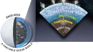 Se descubrió que el agua del océano subterráneo en Encélado es "similar al agua de soda quelagentebebeenlaTierra", comunicaron los científicos. El fósforo en forma de ortofosfato (p. ej., HPO4-2) es probablemente abundante en el océano subterráneo de la luna Encelado de Saturno. Un equipo internacional de científicos halló evidencias de la existencia de abundantes cantidades de fósforo, un componente clave para la vida, disueltas en el océano subterráneo de Encélado, la luna de Saturno. La nave espacial Cassini descubrió el agua líquida del subsuelo de Encélado y analizó muestras a medida que columnas de granos de hielo y vapor de agua brotaban al espacio desde las grietas en la superficie helada de la luna, según comunicaron recientemente