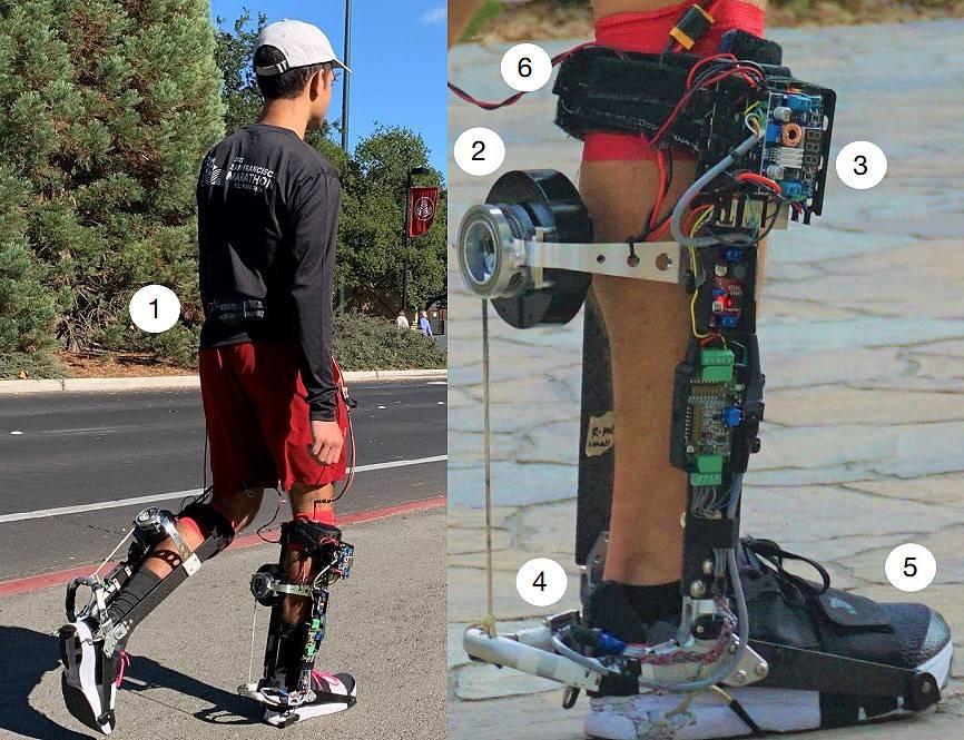 Una ‘bota’ exoesquelética permite caminar de forma más rápida y eficaz. Ingenieros de la Universidad de Stanford (EE UU) han desarrollado un exoesqueleto de tobillo capaz de adaptarse a cada persona, de tal forma que pueda andar a mayor velocidad y gastar menos energía. El prototipo se ha probado con éxito en condiciones reales, en la calle, y supone un nuevo paso hacia los futuros dispositivos de marcha asistida que podrán utilizar personas con problemas de movilidad. Enrique Sacristán. CEST. Una persona camina asistida por el nuevo exoesqueleto de tobillo portátil. / Stanford University/ Kurt Hickman. Los exoesqueletos que ayudan a mover las piernas, aumentando la velocidad de la marcha