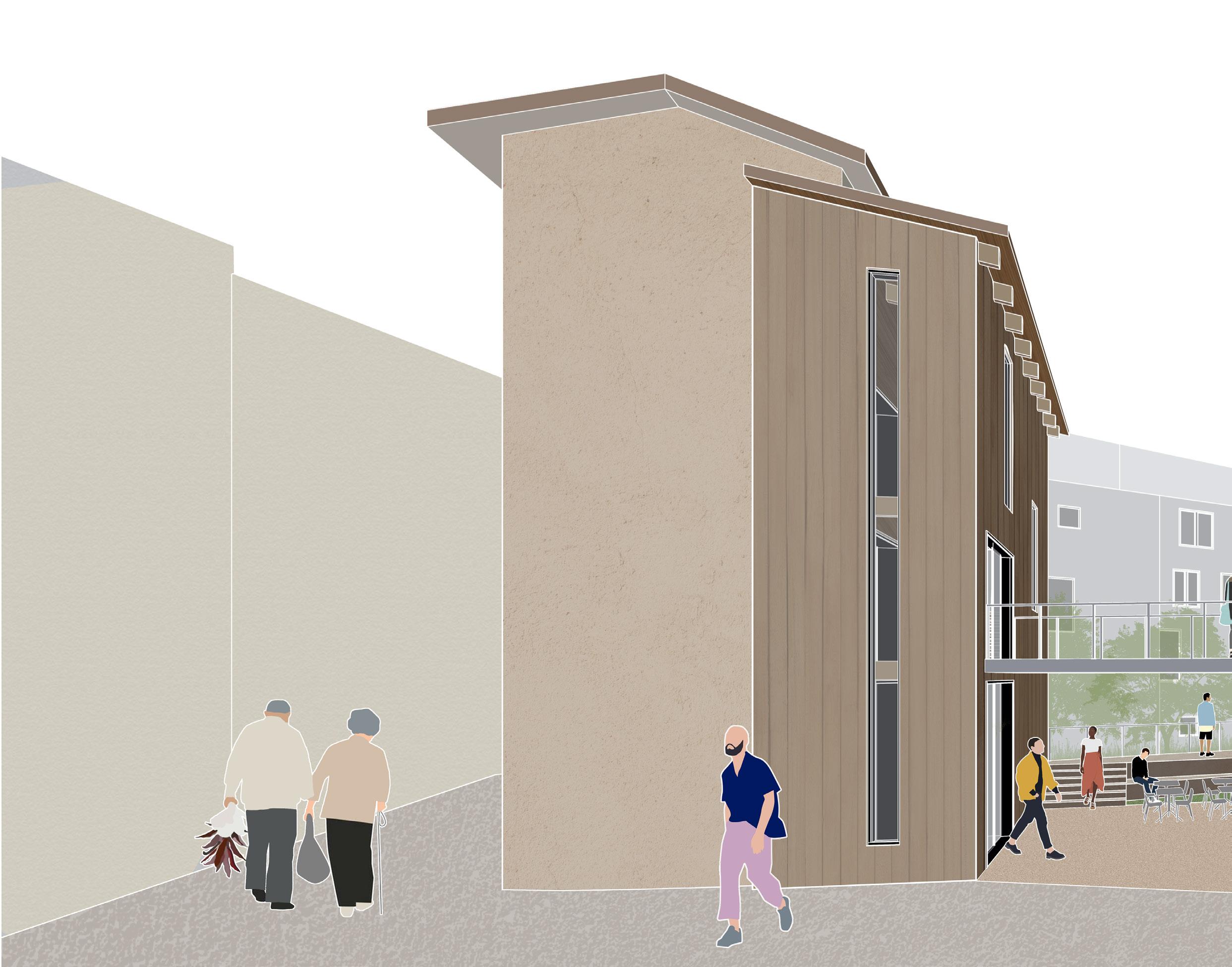 O centro cultural incluirá salas de exposição, uma biblioteca, um café e um espaço ao ar livre. Será construído em um terreno vago e reabilitará o edifício existente ao lado, em pedra, adicionando uma extensão em estrutura de madeira para circulação vertical e acessibilidade. O projeto usará materiais sustentáveis e integrará sistemas de captação e reutilização de água da chuva para alimentar os jardins e instalações sanitárias, promovendo a ventilação e gestão eficiente da água no espaço urbano.