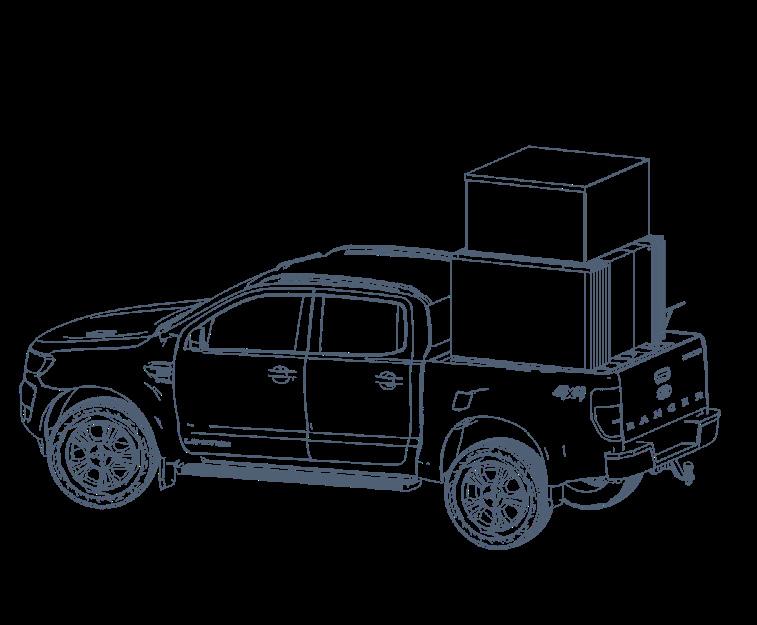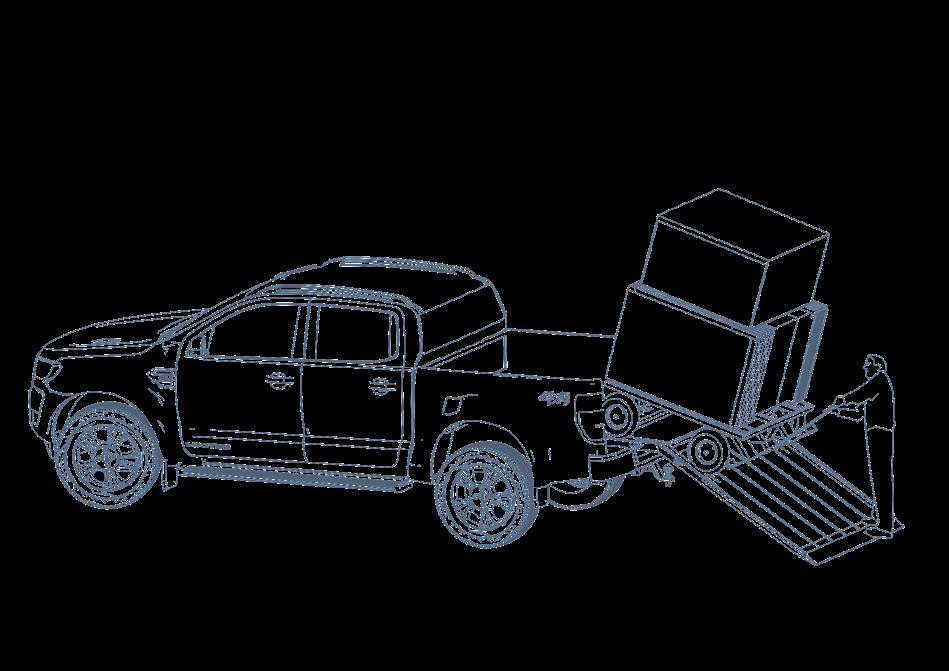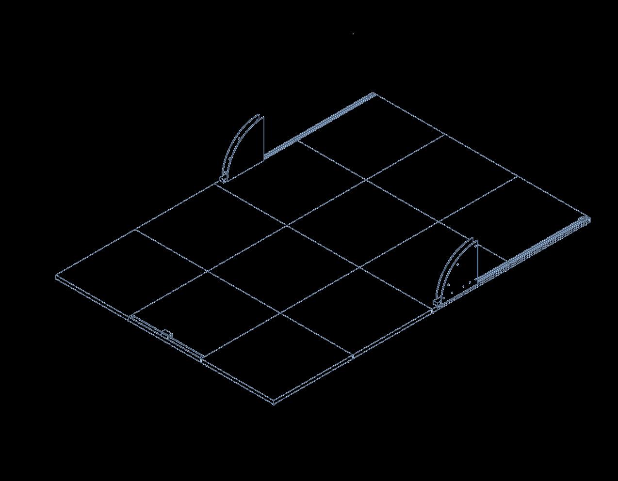 angulador dos pórticos armazenado na caixa junto com o piso, e encaixado nos trilhos após montagem do piso