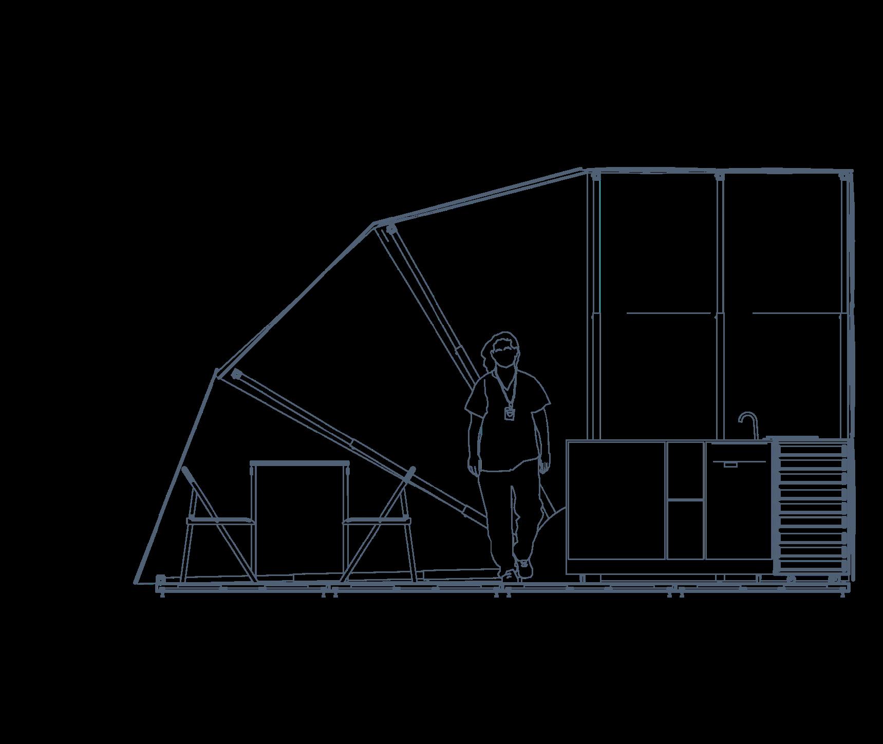 A proposta de projeto apresentada pelo curso consistia em criar uma arquitetura modular temporária capaz de atender a algumas das demandas da população indígena do Parque Estadual do Parque Jaraguá, em São Paulo. A solução desenvolvida visa atender às necessidades médicas, mais especificamente aos serviços de triagem e diagnóstico, e foi projetada para ser facilmente transportada até a aldeia, dado o seu difícil acesso, e para poder ser montada e desmontada rapidamente, sem a necessidade de grandes conhecimentos prévios. Com diretrizes claras e pré-definidas de canteiro, projeto e montagem, a concepção do módulo seguiu a metodologia double diamond, sendo pensado tanto na escala do projeto quanto na do objeto, com um detalhamento de todos os seus elementos e componentes. O projeto, portanto, atende a várias exigências de um ambiente de diagnóstico médico, bem como às exigências de um projeto modular.