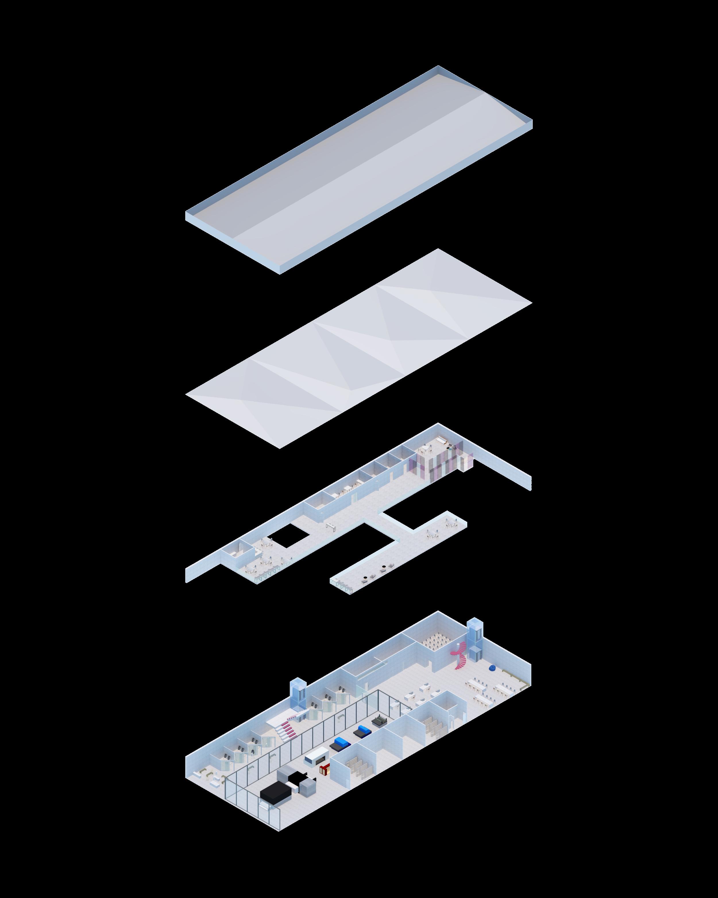 O projeto conceito requisitado pelo cliente tinha como objetivo comportar todos os processos produtivos de uma indústria de estampas, desde a criação de novos padrões, corte e confecção de produtos, até sua venda final, partindo de um galpão comum facilmente encontrado em bairros paulistas como a Mooca. A solução de projeto obtida preza pela tecnologia, transmitida pelas máquinas, que ocupam um ponto central do espaço. A permeabilidade entre os ambientes de trabalho cria um local convidativo e atraente, enquanto os diferentes patamares permitem uma visualização total do ambiente. O ambiente torna-se, assim, mais que uma fábrica de tecido, promovendo a conexão entre os diversos atores do setor, trazendo a escala de produção para nível local.