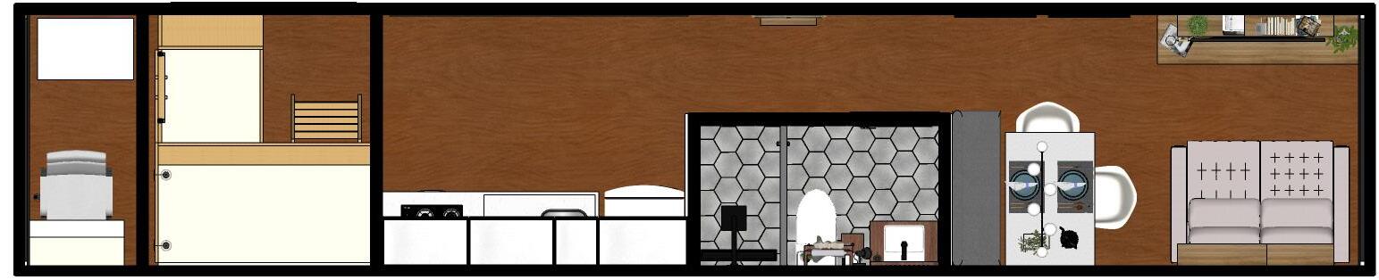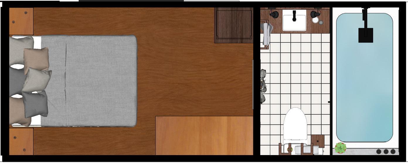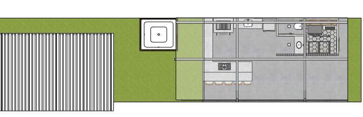 Projeto básico desenvolvido para uma residencia em São Sebastião, no litoral paulista. A partir do desejo de uma residência em containers, o projeto concretiza-se a partir deste material, com dois quartos, sala, cozinha e área externa social, sempre prezando pela iluminação natural e por materiais sustentáveis. O terreno estreito e a limitação de orçamento eram desafios a serem enfrentados pelo projeto, assim como a garantia do conforto térmo-acústico da residência. Além do projeto arquitetônico, foi desenvolvido também o projeto de interiores, com detalhamento de marcenaria e especificação de revestimentos. Implantação