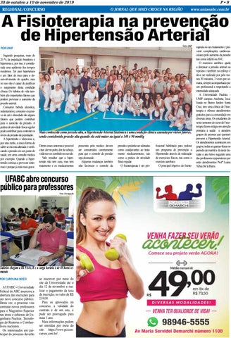 rapeuta no seu tratamento é prevenir complicações cardiovasculares pelo aumento da pressão tais como infarto ou AVC. O exercício aeróbico ajuda a diminuir a pressão arterial no repouso e também no esforço e deve ser realizado por pelo menos 30 minutos, 3 vezes por semana, sempre acompanhado por um profissional e respeitando a intensidade adequada. A Universidade Paulista UNIP campus Anchieta, localizada no Bairro Jardim Santa Cruz, tem uma clínica de Fisioterapia e oferece atendimentos gratuitos para a comunidade em diversas áreas. Os estudantes do sexto semestre do curso de Fisioterapia fazem estágio em atenção primária à saúde e atendem grupos de pessoas que queiram prevenir a Hipertensão Arterial. Os atendimentos acontecem em grupos, todas as quartas-feiras no período da manhã e da tarde durante o ano letivo segundo uma das professoras responsáveis por estes atendimentos Profª Luana Yehia De la Barra.