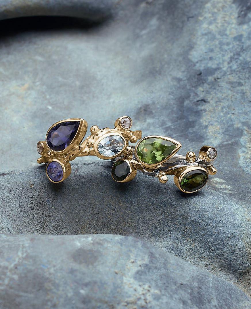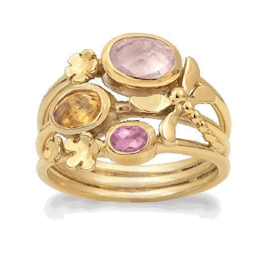 De viste ringe “Spring” & “Summer” er udført i 14 karat guld med ædelsten. Vejl uds. pris 7.950 kr.