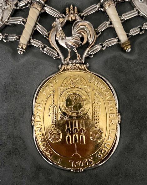 Oldermandens laugskæde med den store kapsel, hvorpå laugets segl ses