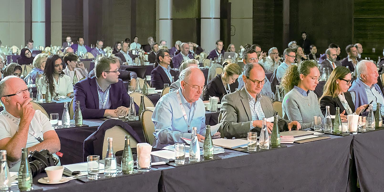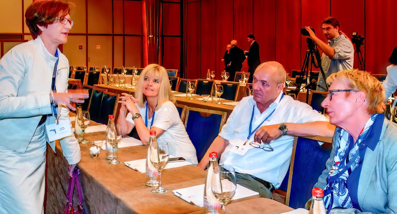 Niels Ruddy Hansen (t.v.) med kollegaer fra Schweiz og Tyskland. Plenarmøde (sektor A distribution)