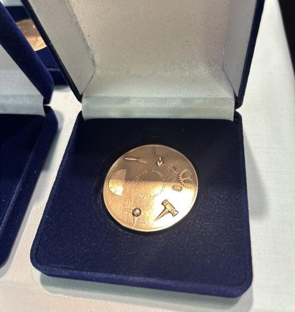 Medaljerne blev overrakt af formand for AU.CLOCK Jens Christian Møller fra Guldsmed Lauridsen i Svendborg og formand for Urmagernes Arbejdsgiverforening og bestyrelsesmedlem i AU.CLOCK Nicolej Høstmark fra
