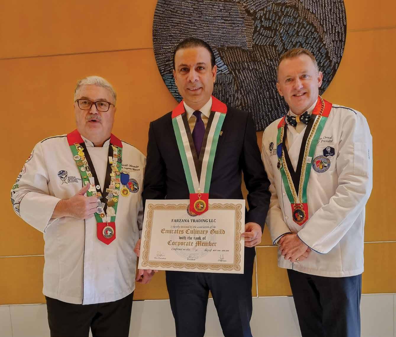 Fariborz Khadem Pour- Head of Foodservice, Farzana, received the membership certificate from Chef Harald Oberender, VP of Corporate ECG, and Chef Alan Orreal, President of the ECG.