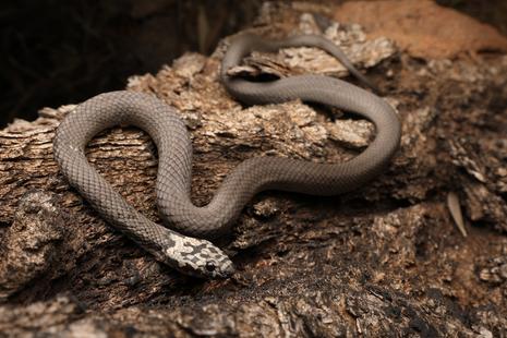These snakes are some of the few highly-venomous Australian snakes that live in trees 50cm long, their body is uniform gunmetal grey, while their heads are adorned with intricate black/white patterns that vary between individuals They can be found in the South/East part of the Northern Gulf, and as far west as Rungulla National Park They eat frogs and lizards, and in savannah regions can most easily be seen hunting on ironbark trees and rock outcrops They are incredible climbers the snake pictured was photographed climbing vertically (with the camera facing the floor)