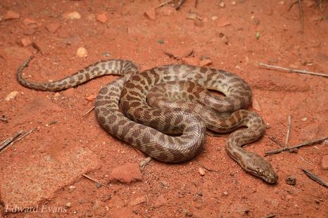 These snakes show considerable regional variation in colour and pattern, but in the Northern Gulf region they often have brown-red blotching/banding on a lighter base. They have a very similar appearance to spotted pythons (A. maculosa) but their pattern often appears ‘softer’ with less defined edges. Their habitat covers much of arid Australia and the Top End, including the central and southern parts of the Northern Gulf region. These pythons like to eat lizards, frogs and small mammals.