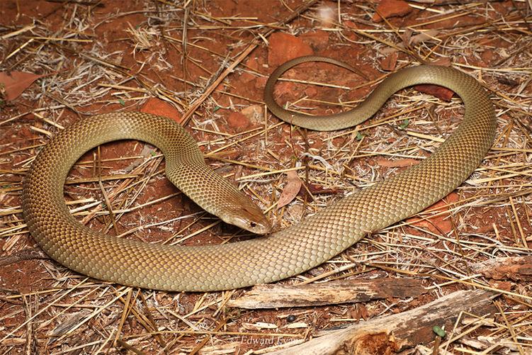 Found in woodlands and savannah across the Northern Gulf, this is an extremely fast snake, easily mistaken for a brown snake or taipan when on the move Usually 1m-1 3m long, they are dark grey to brown, often with shades of red at the end The head is often tan, with spots or flecks, and sometimes a teardrop pattern below the eye Some snakes have blueish colouration on the skin between the scales