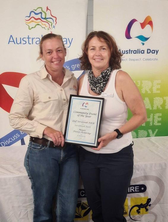 Mandy and Ellen collecting Gulf Savannah NRM's Australia Day award for Savannah Bash