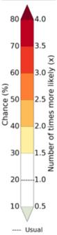 There is an increased chance of unusually high maximum and minimum temperatures across north Australia between October and December.
