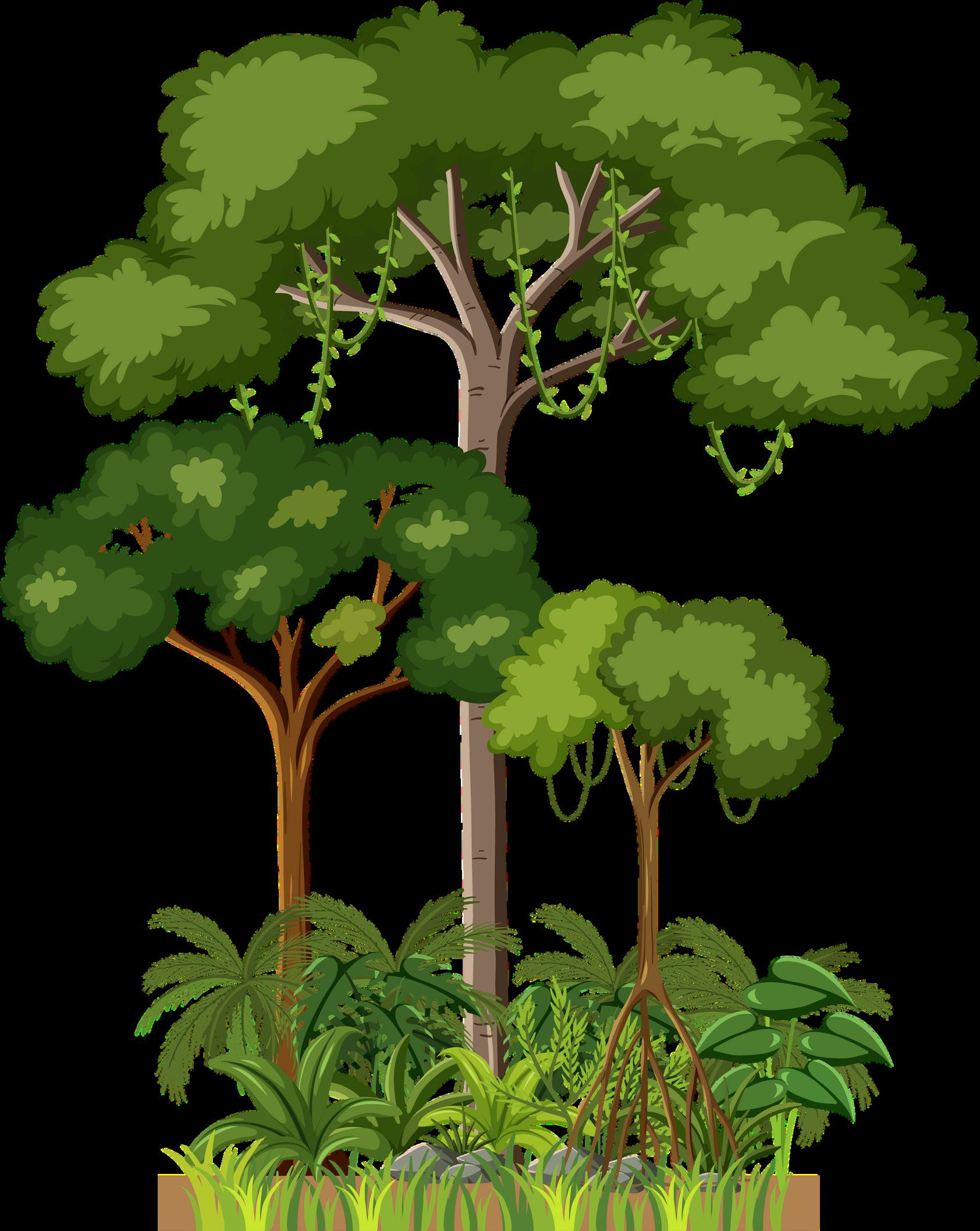 Inthecenter:drawthewetsclerophyllwithtalltrees, ferns,shrubsandgrasses.
