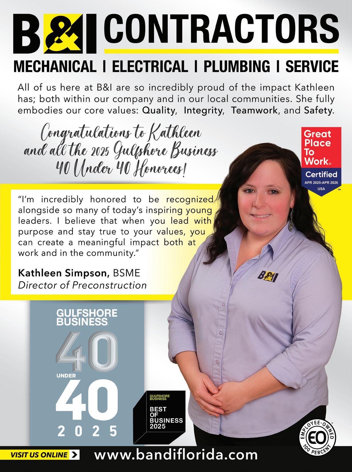 That’s why Gulfshore Business proudly recognizes individuals who are well on their way — those who haven’t yet hit that numerical milestone but are clearly leading, building, creating and making a difference. Our 40 Under 40 honorees aren’t just preparing for what’s next. They’re already shaping the future.