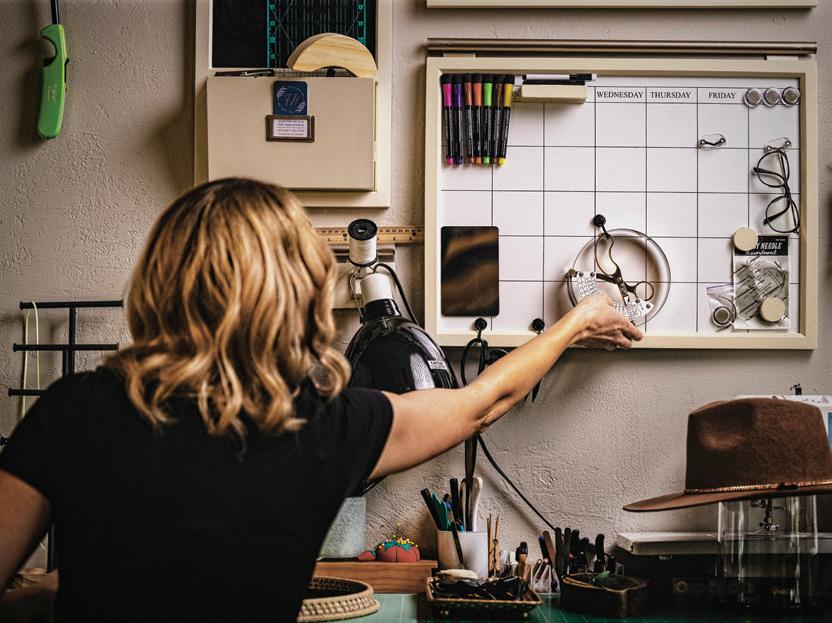 She’s hosted about 40 events, including at breweries and country clubs. She brings the hats (cowboy, fedora, etc.), the decorations (feathers, ribbons, etc.) and even a soldering iron for personal branding. The customers make their selections and leave with their own nifty hat.