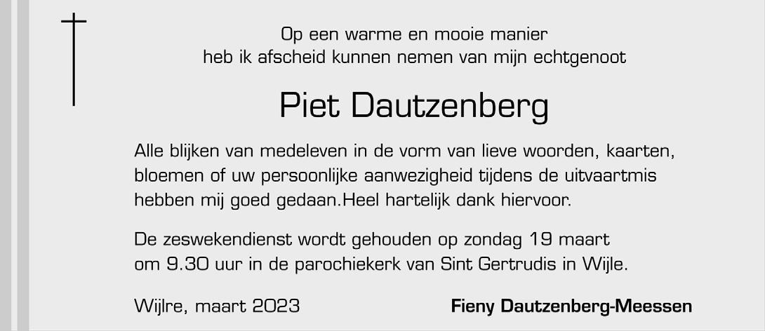 De plechtige zeswekendienst zal plaatsvinden op zondag 19 maart om 11.00 uur in de H. Petruskerk te Gulpen.