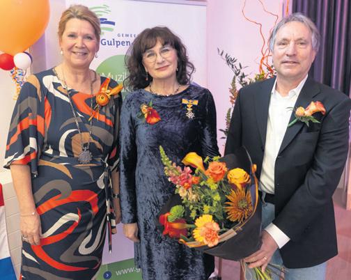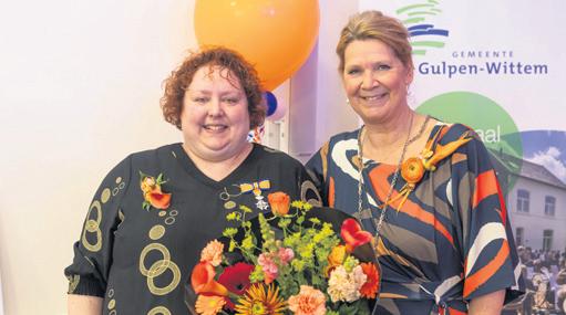 Gulpen - Wittem - Burgemeester Nicole Ramaekers-Rutjens reikte op woensdag 26 april maar liefst 12 Koninklijke Onderscheidingen uit aan inwoners van de gemeente Gulpen-Wittem die zich verdienstelijk hebben gemaakt voor de samenleving. Negen inwoners zijn benoemd tot lid, twee tot ridder en één tot officier in de orde van Oranje Nassau. De gedecoreerden werden in de loop van de ochtend door de burgemeester verrast. Zij maakte een rondje door de gemeente samen met haar man Paul in hun opvallende oranje autootje (Lees verder op blz. 11)
