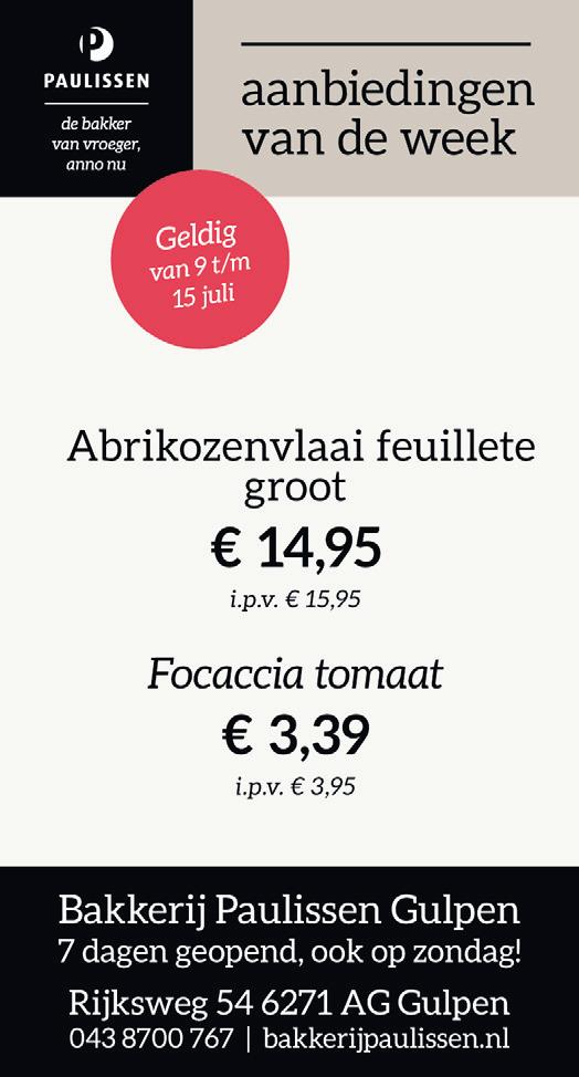 beste vóór of uiterlijk op zaterdagavond 13 juli via het gebruikelijke mailadres info@gulp-en-geuljournaal.nl inleveren. Op tijd ingezonden berichten worden dan in de uitgave van 19 juli geplaatst.