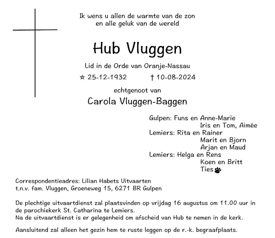 De leegte blijft nog moeilijk te aanvaarden, maar zoveel betrokkenheid verzacht het verdriet en vergroot de moed om verder te gaan. Een speciaal woord van dank aan het verzorgend personeel van verzorgingstehuis Langedael te Vaals voor de goede zorg tijdens zijn verblijf in Vaals.