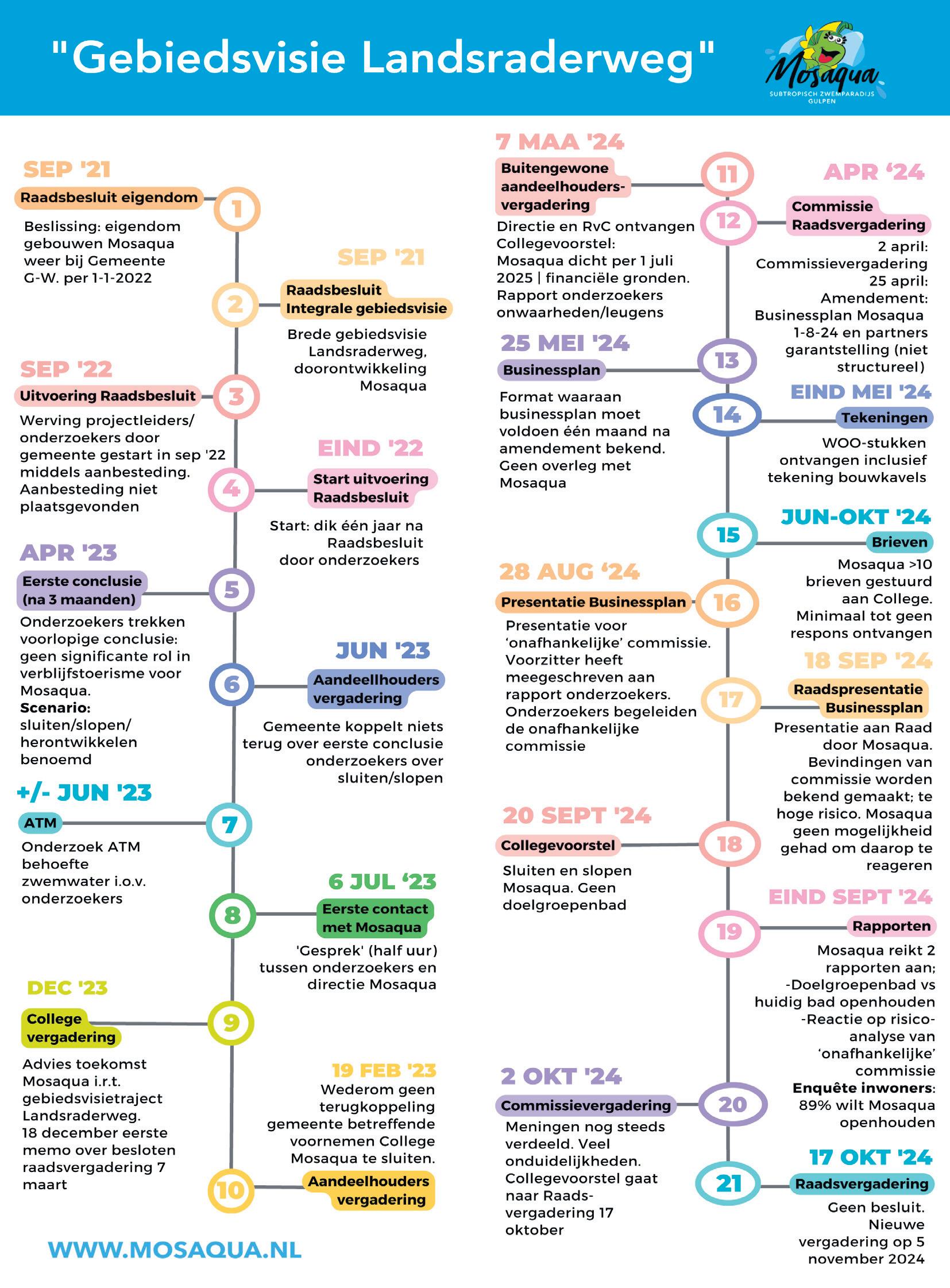 Mosaqua moet dicht. Hiermee confronteerde het college de raad in maart jl. In hun “Rapportage Landsraderweg Mosaqua” concludeerden Ando van de Pol en Jos Bauer dat het financieel niet meer te verantwoorden was Mosaqua te handhaven. Door de vele protesten die dit losmaakte, kreeg het zwembad nog een laatste kans: als de directie een businessplan met sluitende exploitatie zou aanleveren, zou Mosaqua misschien toch open kunnen blijven. Een “onafhankelijke” commissie kwam tot de conclusie dat het een uitstekend businessplan was, maar er waren een aantal risico’s onbenoemd gebleven. Daarom moest Mosaqua toch dicht. Maar die risico’s zijn goed beheersbaar volgens associate professor dr. A van Zon in zijn “Risico-analyse overlevingskansen Mosaqua”.