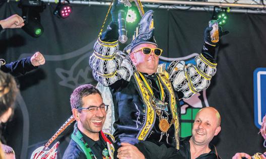 Bij het slotstuk van de Grote Zitting kwam op de klanken van ‘Heerlik’ van Rempetemp de kist, met daarin de nieuwe heerser, van achteruit de zaal naar het podium. Precies op het juiste moment toonde het nieuwe Prinsenpaar zich aan het Mheerder volk. Daar stonden ze dan: Prins Maurice II en Prinses Kelly I! Onder luid gejuich en geklap werd hen een grootse ontvangst bereid. Wie zijn Maurice en Kelly?