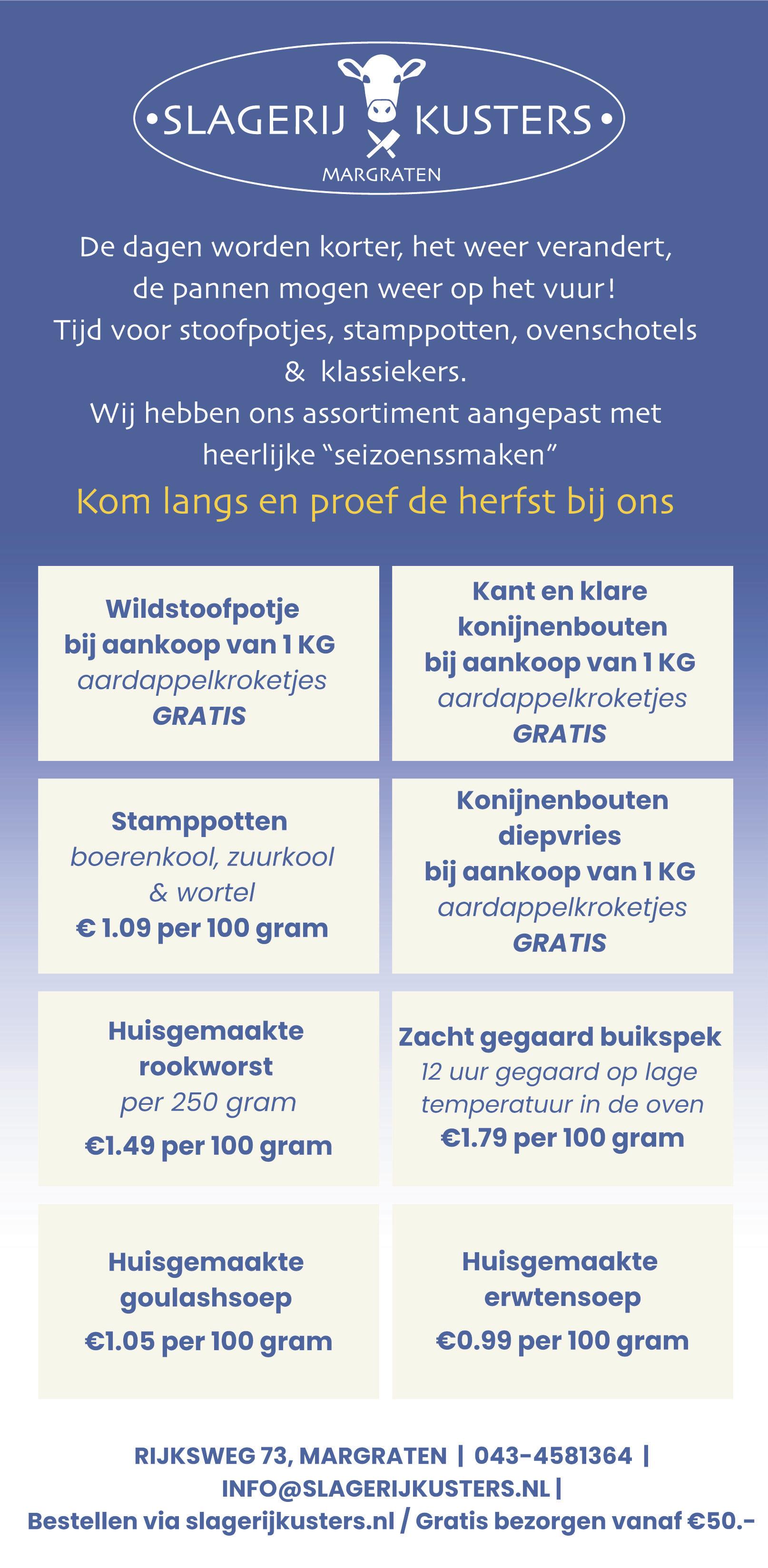 Vanaf 27 september zij we van maandag t/m zaterdag geopend!