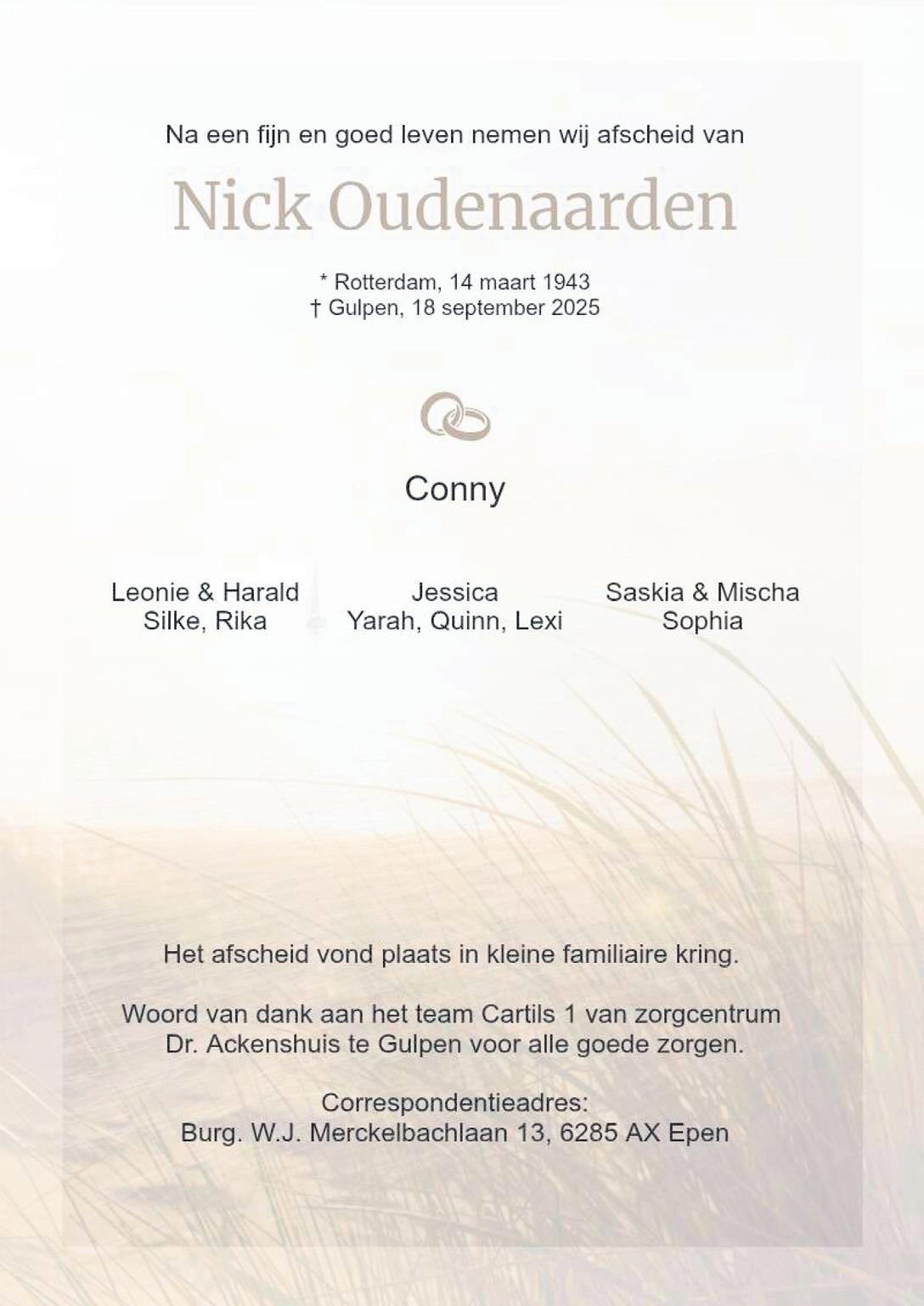 Zondag 28 september om 11.00 uur: H. Mis ter intentie van jaardienst Gèr (Sjir) Cobbenhagen (st); Maria Didden-Gouders (col).