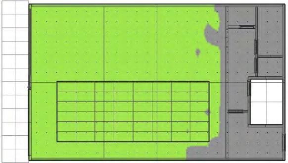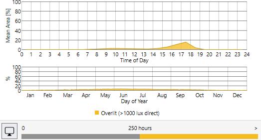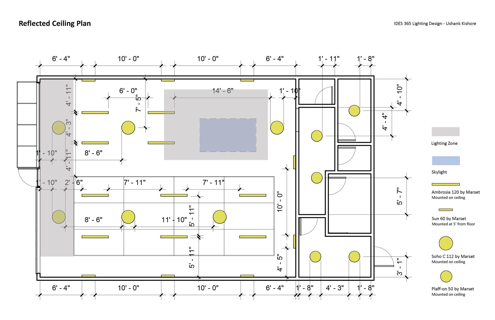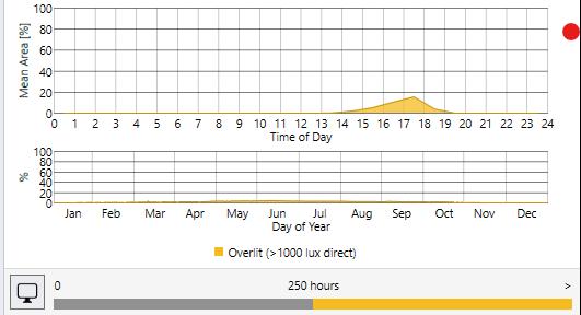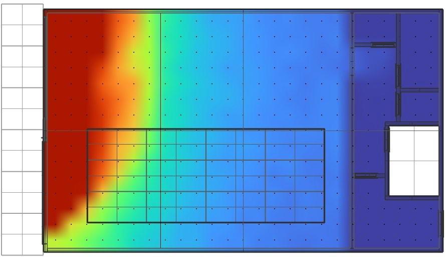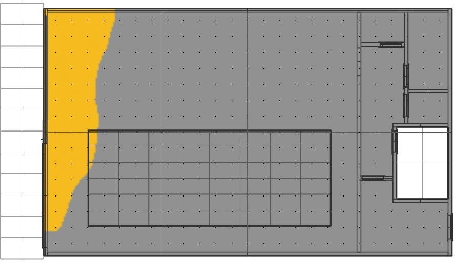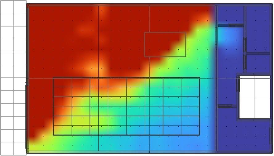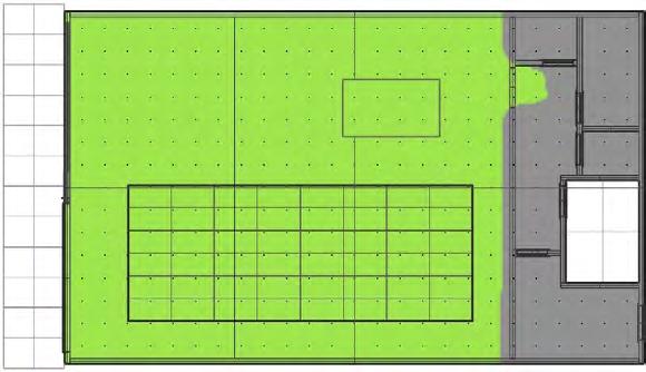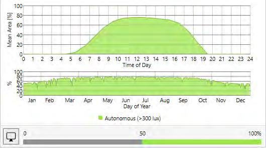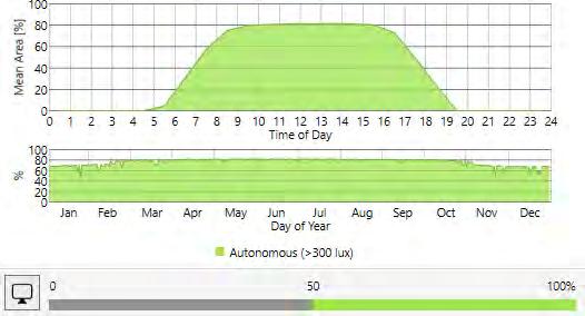 Sensors are placed 24” apart and data like Spatial daylight, Sunlight exposure, and average LUX are collected before and after placing the skylight. The area of the skylight has been adjusted to get the desired results.