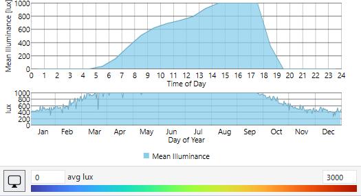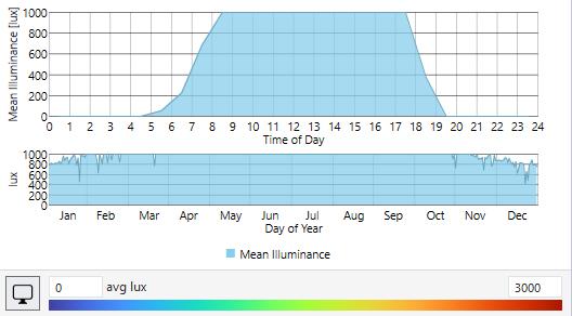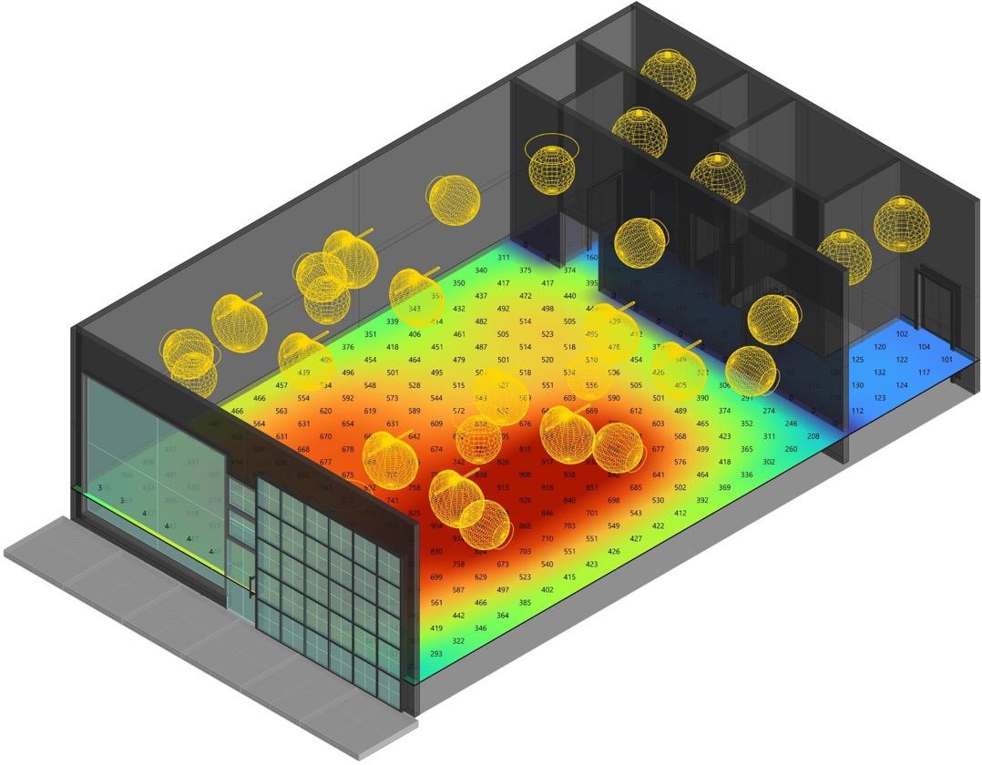 *Daylight turned off, LUX from luminaires only.