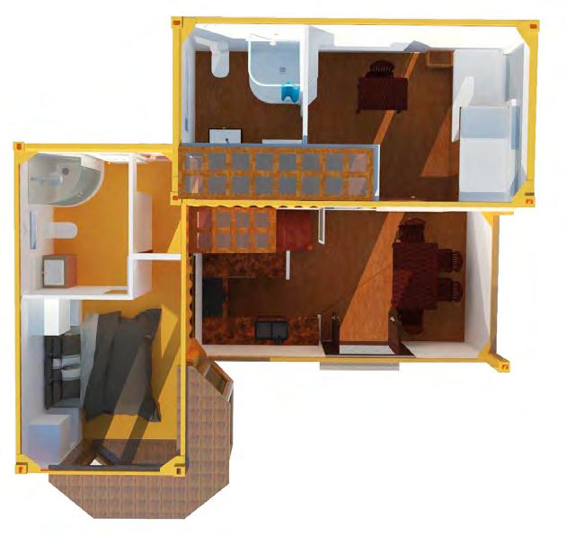 Third container: The last container where the staircase is ending and furnishes the children’s room with an attached bathroom.