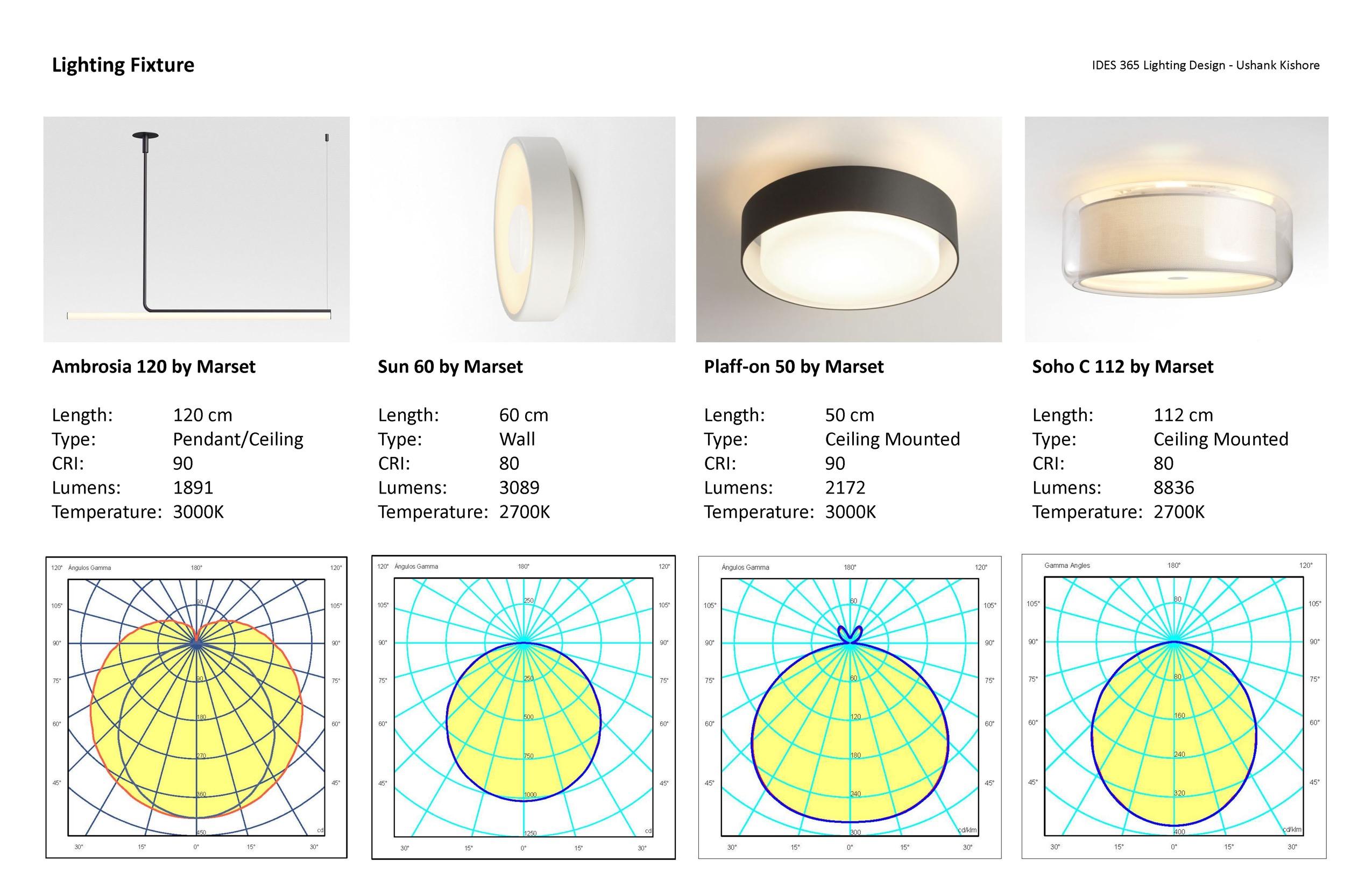 Lighting fixtures were selected as per the specifications and their placements were also finalized after achieving suitable LUX levels by using their IES data files and Polar maps in the project model.