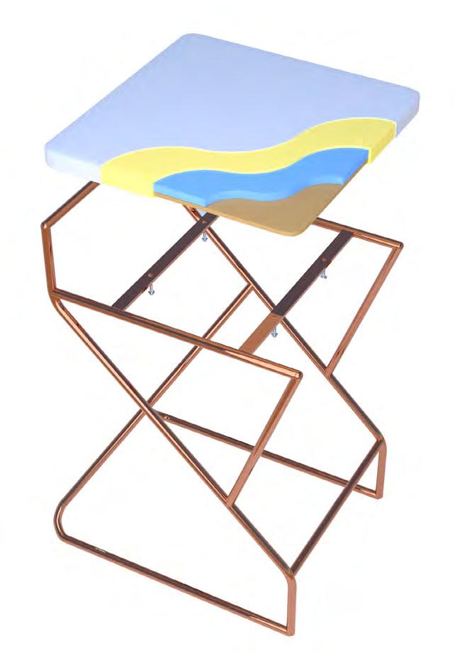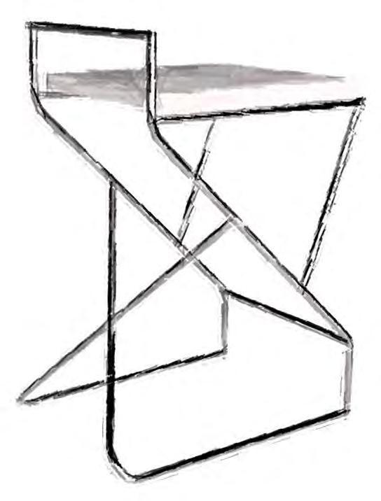 This design holds a complex connection of the metal elements which is crowned by a white stable and uniform geometric figure. Here each metal part plays an important role in maintaining the structural integrity of this chair, making everything seem simple and necessary while still holding a complex design.