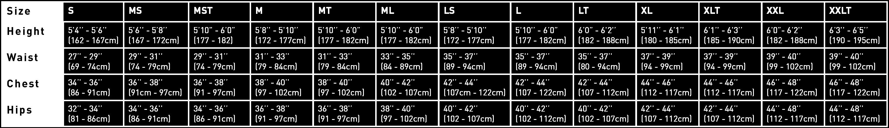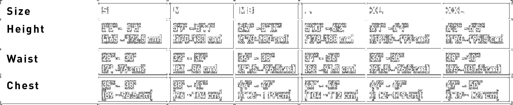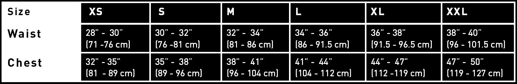 SIZES JNR | XS-S | M-L | XL-XXL