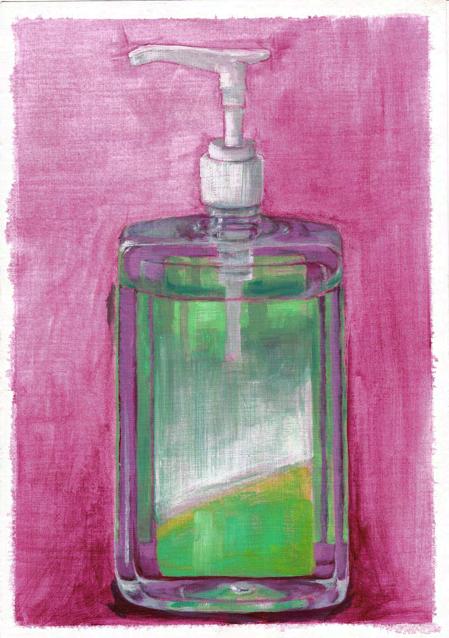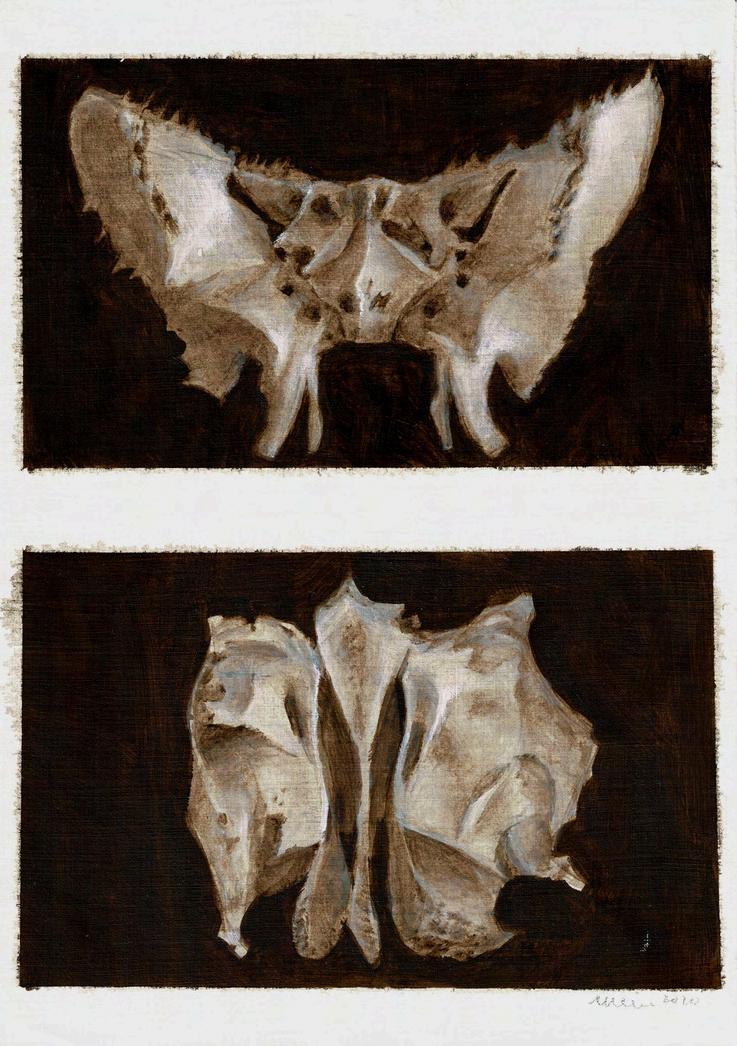 Enophthalmos, 2021 (gouache on paper) Commodities of Covid, 2020 (oil on paper)