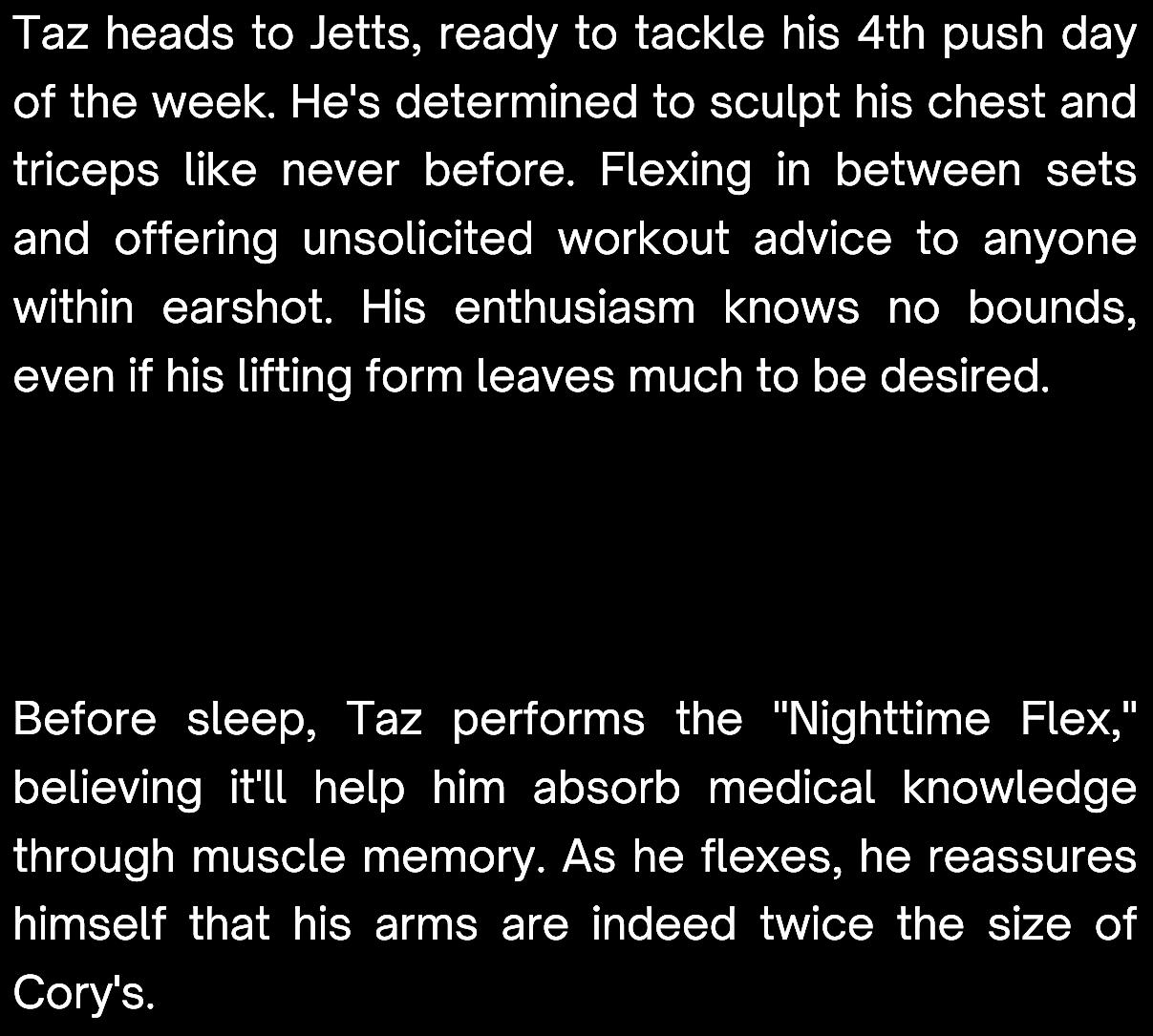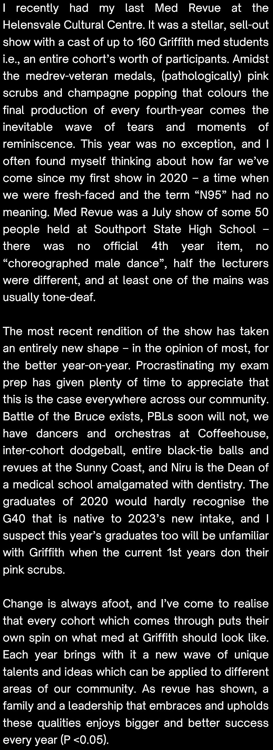 31 Doing Anki on the toilet 32 Not using supernotes to write LOs 33 Arriving to PBL early/on time 34 Quizzing your PBL classmates on things they don’t know 35 Having dirty fingernails 36 Wears clinical dress for PBL 37 Randomly invades your room to study 38 Same comms feedback every time - “empathy was good, yeah basically what everyone else said” 39 Answers every question during anatomy 40 Public OSCE practice 41 Volunteering to be a patient in clinical skills 42 Chlorhexidine smell 43 Studies in the main library 44 Struggles with getting gloves on 45 Says they want to be a neurosurgeon 46 Wears RM Williams 47 Wearing a stethoscope around campus for no reason 48 Corrects your pronunciation of antibiotics 49 Orders tacos from GYG 50 Sending �� in the group chat 51 Telling everyone in the group chat what