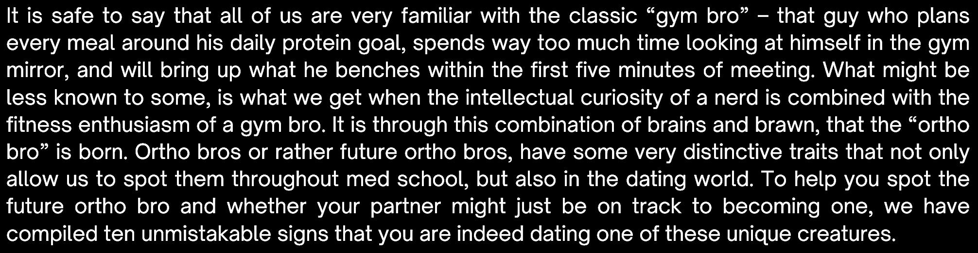 How to know if you ’ re dating an “Ortho Bro” Med Student Icks