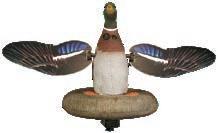 Tired of ducks flying high overhead and not paying attention to your decoys? The Splashing Flasher XS has just the right amount of flash to create attraction towards your spread, perfectly simulating a mallard drake stretching his wings or landing. Photo printed wings on the top side with bright white on the bottom for realism and high contrast. The textured float helps the decoy blend with the natural colour of muddy water. Includes one 12V lithium ion bat tery recessed within the decoy body, reducing size and weight, Operates in water as shallow as 10 inches. Anti flipping device for use in high winds and rough water. Remote/receiver compatible (sold separately). Easy charging with external charge port. 10 hours of run time and fast 3 hour charging time. Add a second battery (sold seperately) to double the run time to 20hrs!