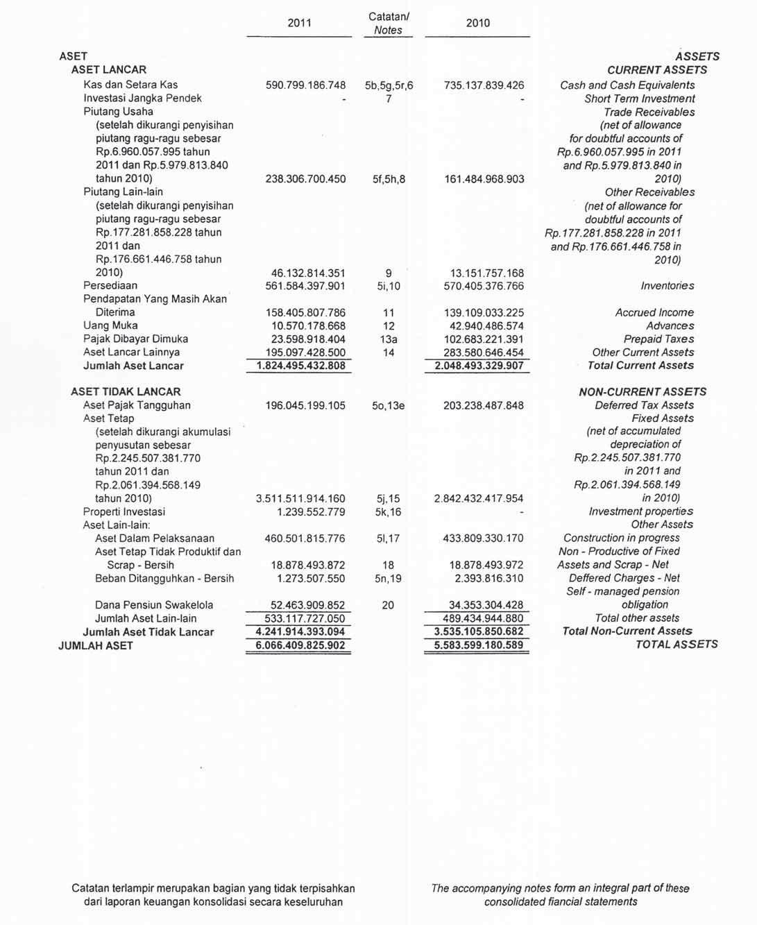 Beberapaakundalamlaporankeuangankonsolidasian untuktahunyangberakhirpadatanggal31Desember 2010telahdireklasifikasiagarsesuaidenganpenyajian laporankeuangankonsolidasianuntuktahunyang berakhirpadatanggal31Desember2011untuktujuan perbandingan.