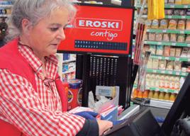 Behin erosketa eginda, kaxan lagundu eta kobratzeko prest aurkitu dugu Jaione.